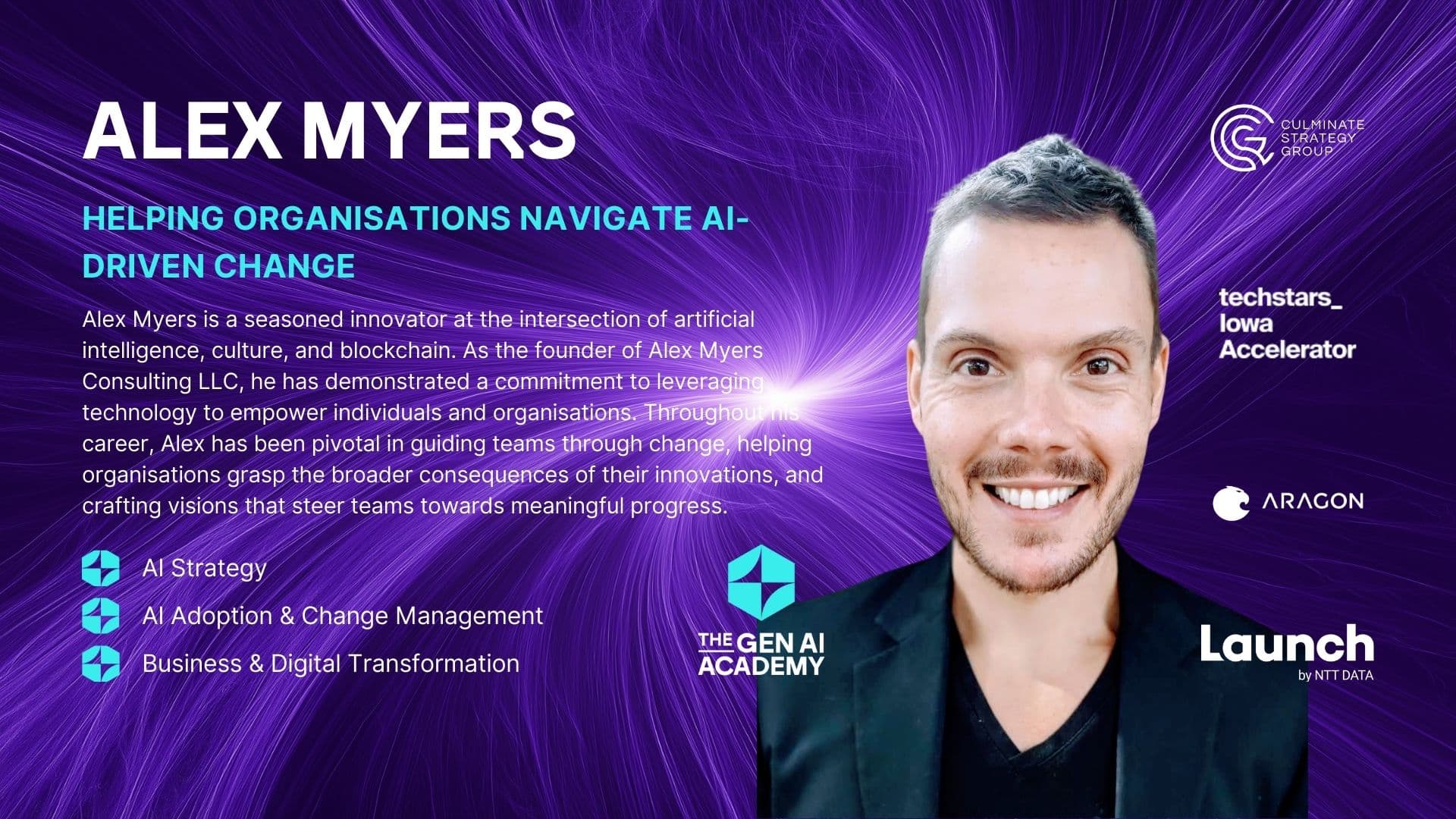 Alex Myers es un innovador experimentado en la intersección entre la inteligencia artificial, la cultura y la cadena de bloques. Como fundador de Alex Myers Consulting LLC, ha demostrado su compromiso con el aprovechamiento de la tecnología para empoderar a las personas y las organizaciones. A lo largo de su carrera, Alex ha desempeñado un papel fundamental a la hora de guiar a los equipos a través del cambio, ayudar a las organizaciones a comprender las consecuencias más amplias de sus innovaciones y crear visiones que orienten a los equipos hacia un progreso significativo.