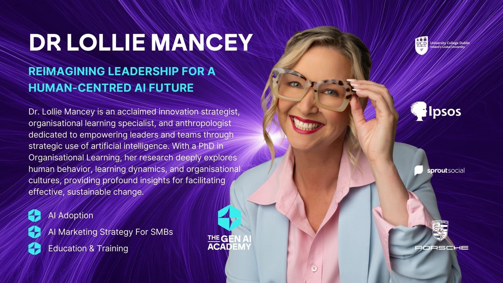 Descrita como una «estrella del pensamiento empresarial», la Dra. Lollie Mancey es una antropóloga, futurista y educadora conocida por descifrar cambios complejos con claridad y agudeza. Aporta una perspectiva cultural a la innovación, ayudando a las organizaciones a navegar por la transformación de la IA con profundidad ética y confianza creativa. En The Gen AI Academy, Lollie imparte formación en liderazgo y conocimientos estratégicos que capacitan a los equipos para aprovechar la IA generativa con el fin de lograr un impacto audaz y centrado en el ser humano.